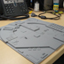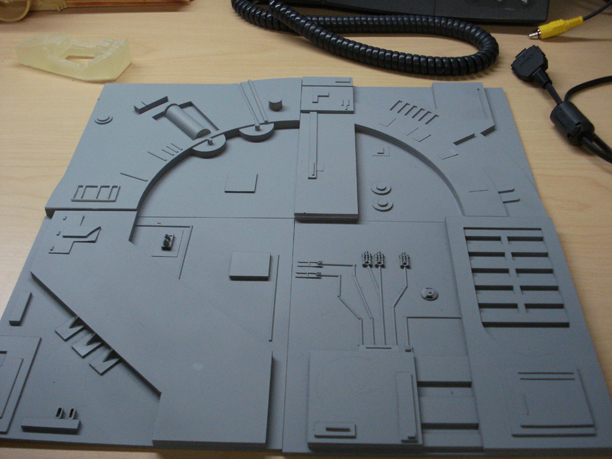 These are mastered from laser cut acrylic to match some of the most widely known examples of the screen used Death Star surface panels. These were mastered by me and each tile is 6 inches by 6 inches square. The tiles are modular and are most commonly used in a four, six or nine panel configuration. A 9 tile configuration will make a base 18 X 18 inches.